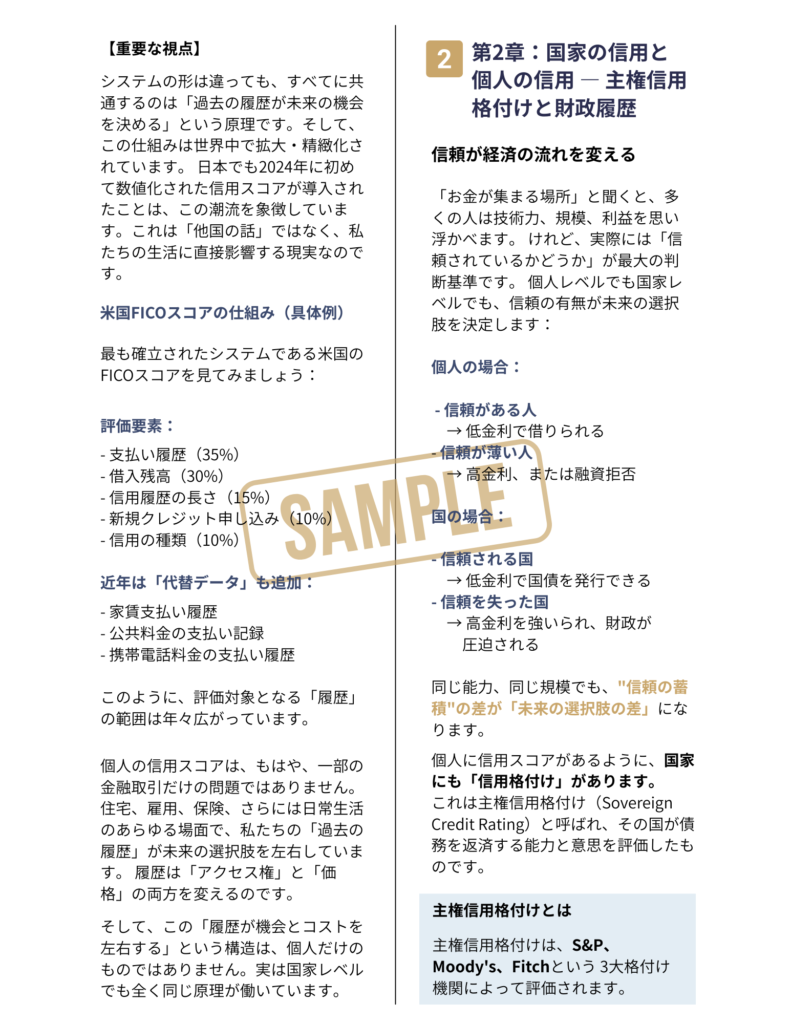 目に見えない社会のルールを可視化。かつての信用は「人徳」でしたが、今は「データ」に置き換わりつつあります。過去の履歴が未来の機会を左右するデジタル時代の仕組みを知ることは、現代を生きる大人にとって不可欠なリテラシーです。